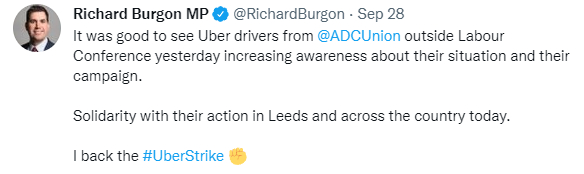 On 28th September 2021, the ADCU staged a 24 hour national strike against Uber and held simultaneous demos in 8 UK cities - London, Birmingham, Manchester, Nottingham, Bristol, Sheffield, Leeds and Glasgow.